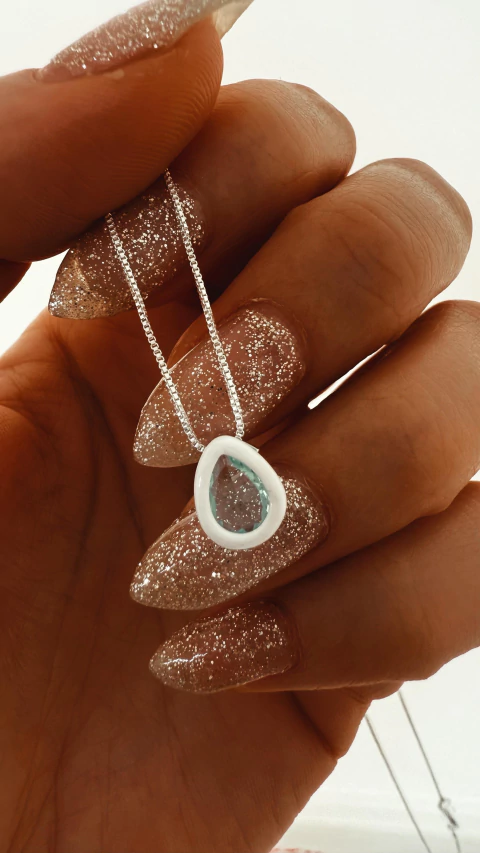 Una joya que combina elegancia y sofisticación con un toque de color único. Este conjunto incluye un dije en forma de gota cristal zirconia color celeste con contorno esmaltado color blanco delicadamente adornado , que aporta un brillo sutil y moderno a tu look.